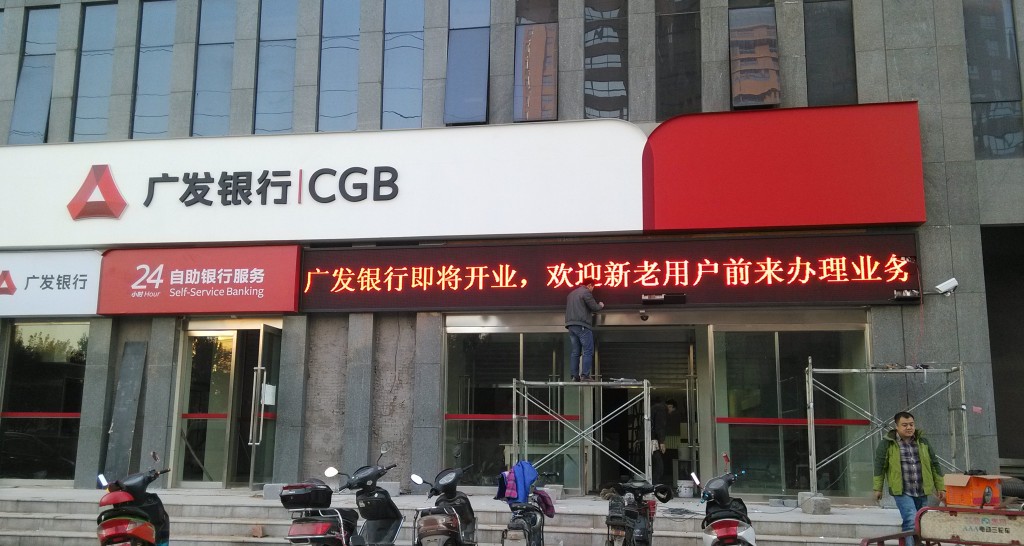 鄭州廣發(fā)銀行走字屏安裝現(xiàn)場(chǎng)