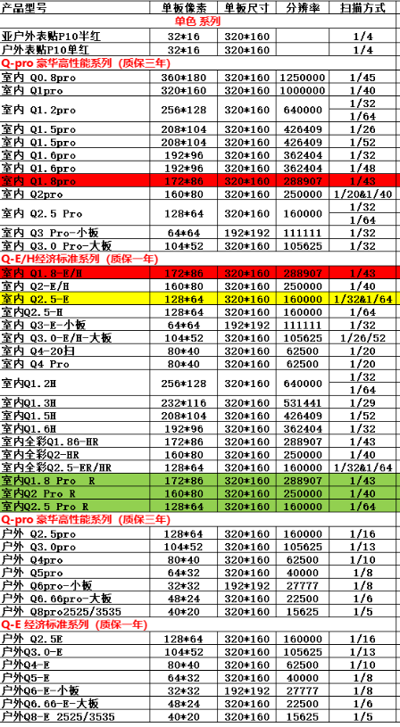 led顯示屏參數(shù)規(guī)格尺寸對照表